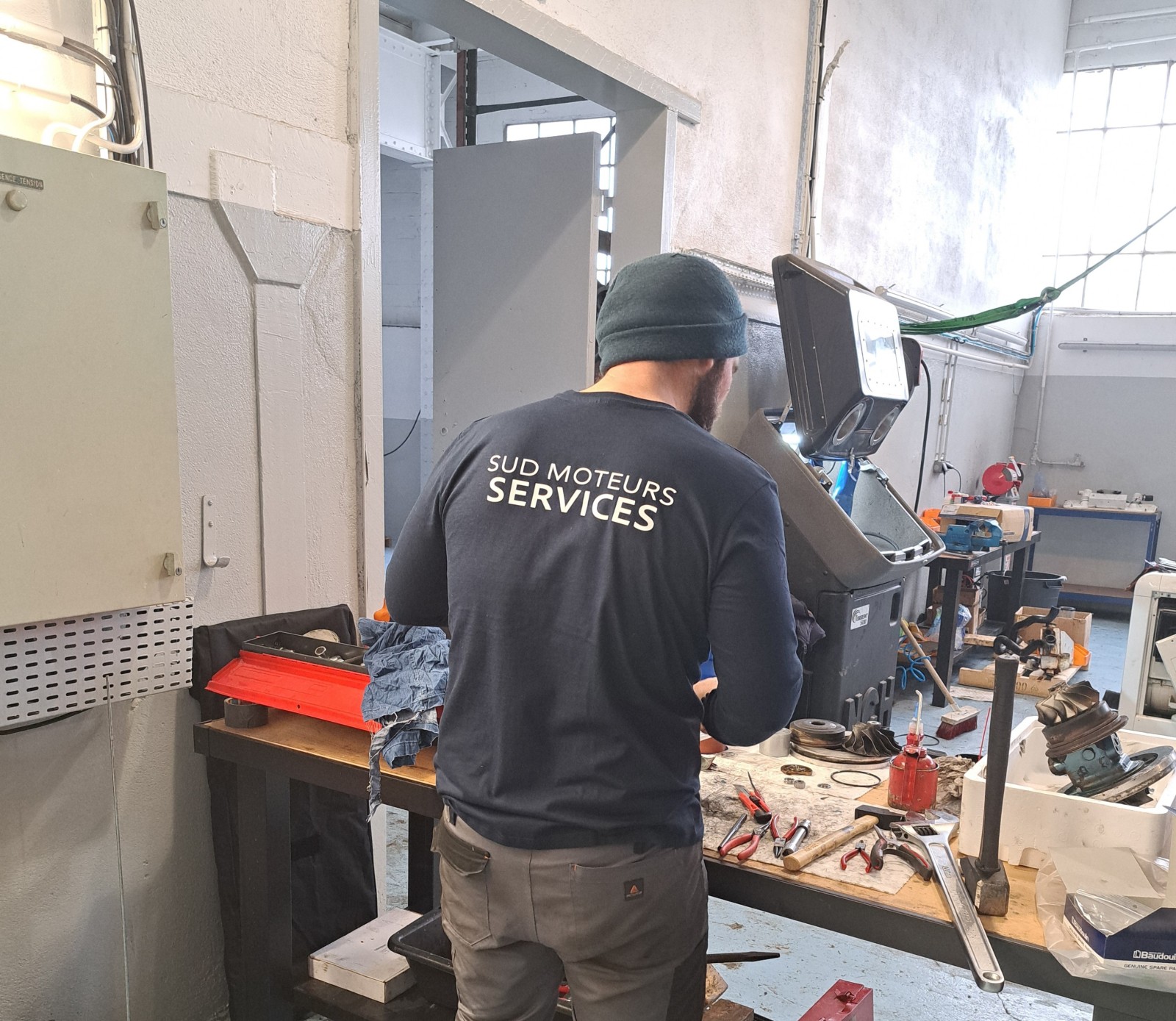 Démontage complet des deux turbocompresseurs pour inspection et contrôle de l’état général.
